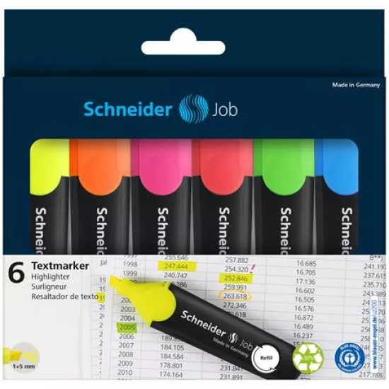 Szövegkiemelő készlet, 1-5 mm, SCHNEIDER "Job 150", 6 különböző szín